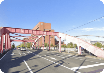 目印の今川橋が見えます。その奥の建物が順天堂大学浦安病院です。