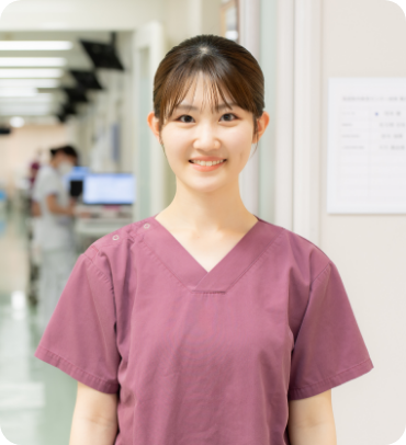 A看護学実習を乗り越えて卒業し働き始めたとき、この先ずっとこの仕事をしていくんだと慣れない環境の中で不安になったことがありましたが、家族や友だち、同期や先輩に支えられながらここまで続けてくることができました。実習のときに感じた看護をする上で大切にしたいことや、働き始めてからできた目標とする先輩の姿はロールモデルになっています。短期間で様々な診療科を経験できるのは看護学生の今だけなので、そのときに感じたことを大切にして、自分が何をしたいのかを考えていくことが大切だと思います。もちろん気分転換も大事なので、仕事以外で打ち込めることを作っておくことも大切だと思います。学生の頃の今の時間を大切にして頑張ってください!