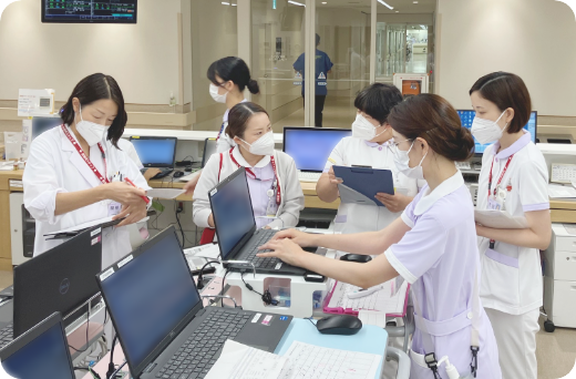 スタッフ間のコミュニケーションが活発でアットホームな病棟です。患者さん・ご家族と一緒に、みんなで話し合いながら退院後の生活を見据えた看護を実践しています。スタッフが、心身健康で仕事と生活が両立できるように、声を掛け合いながら仕事をしています。