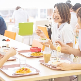 職員食堂の人気メニューは、麻布十番にお店を構える「グリル満天星」の日替わり「特別食」。また、月1回の「ごちそうメニュー」は13時前に売り切れることもあるほど人気です。他にも2種類の日替わりおかずやパスタ・麺類などの定番メニューが充実。どのメニューも格安なので、気軽に毎日食べられ、栄養満点で一人暮らしの大きな味方です。パフェやゼリーなど、女子にうれしいスイーツもあり、病棟から離れてリフレッシュするにもピッタリです。