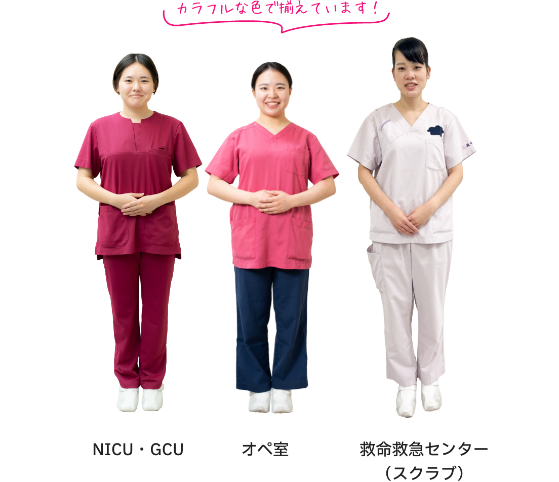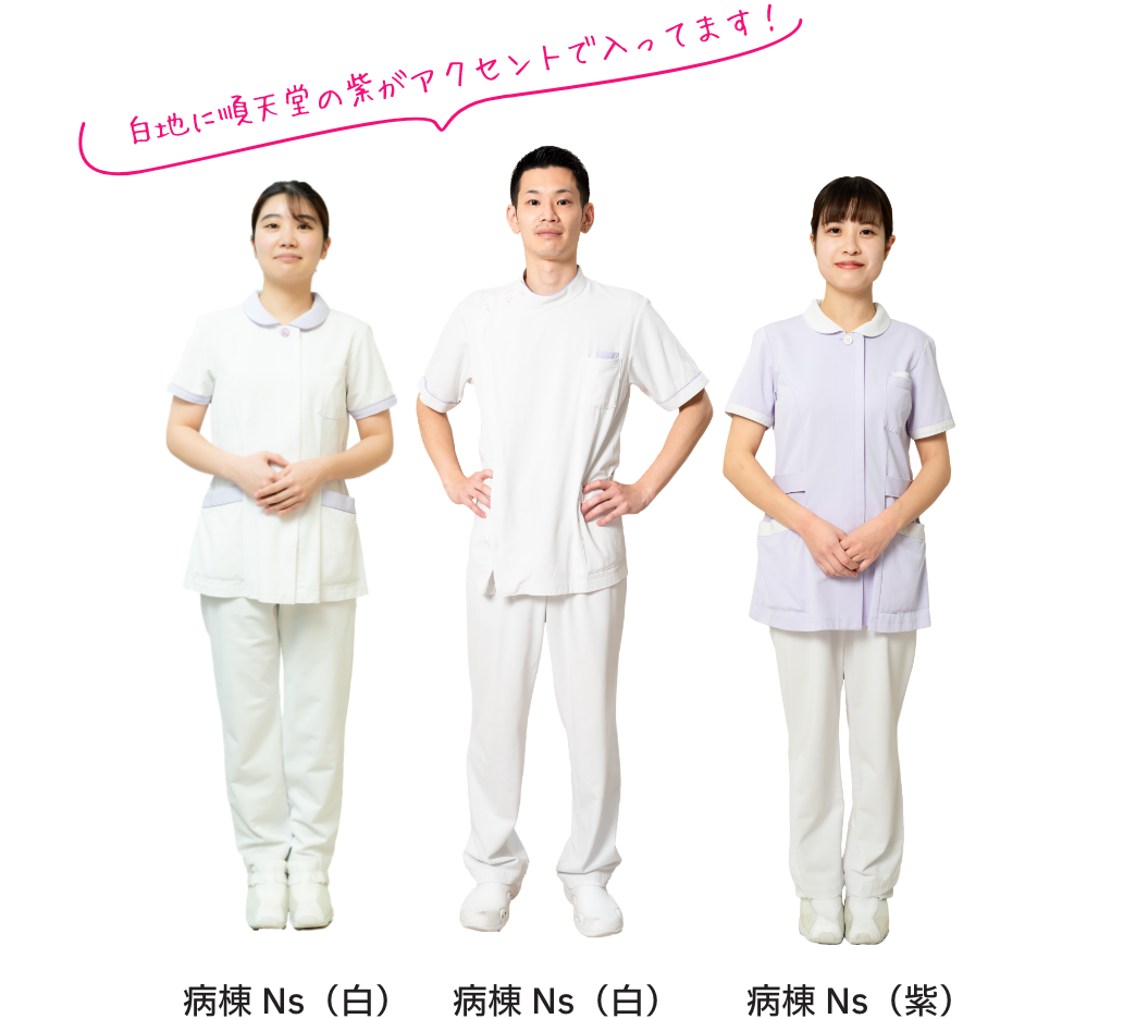 当院の制服は白を基調に薄紫色のアクセントが入った爽やかなデザインです。動きやすく、大容量のポケットなど機能性もバッチリ!